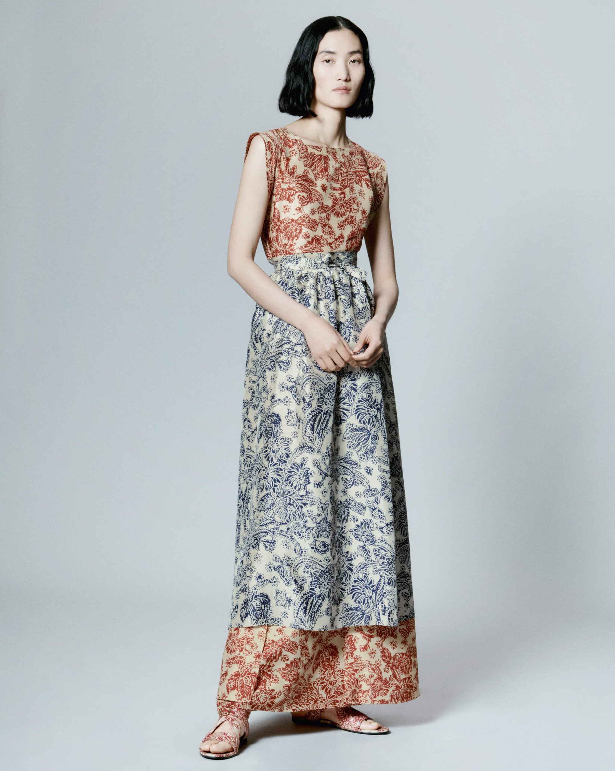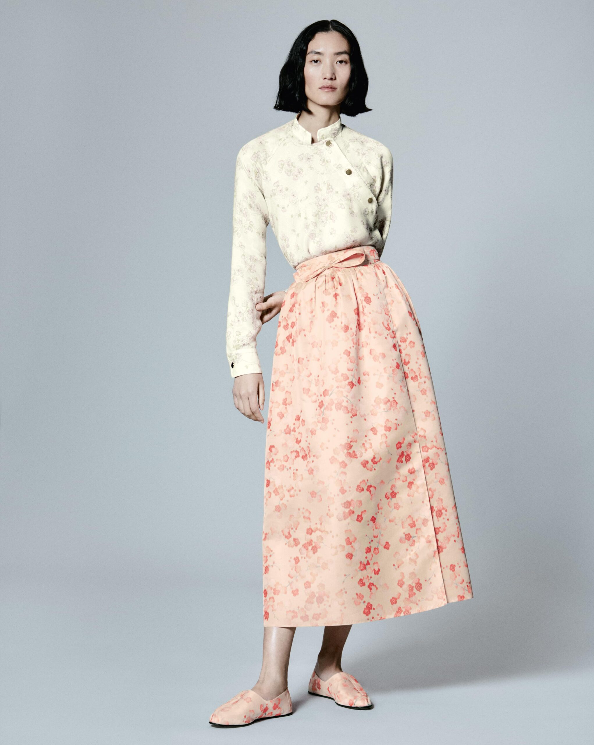 Подорож починається з текстурної розкішності та приглушених відтінків бамбука. Делікатність і багатошаровість сакури супроводжуються її світлими кольорами, плавними формами та білизною, доки все не кипить у сміливих, але ніжних блокових принтах кандзі.