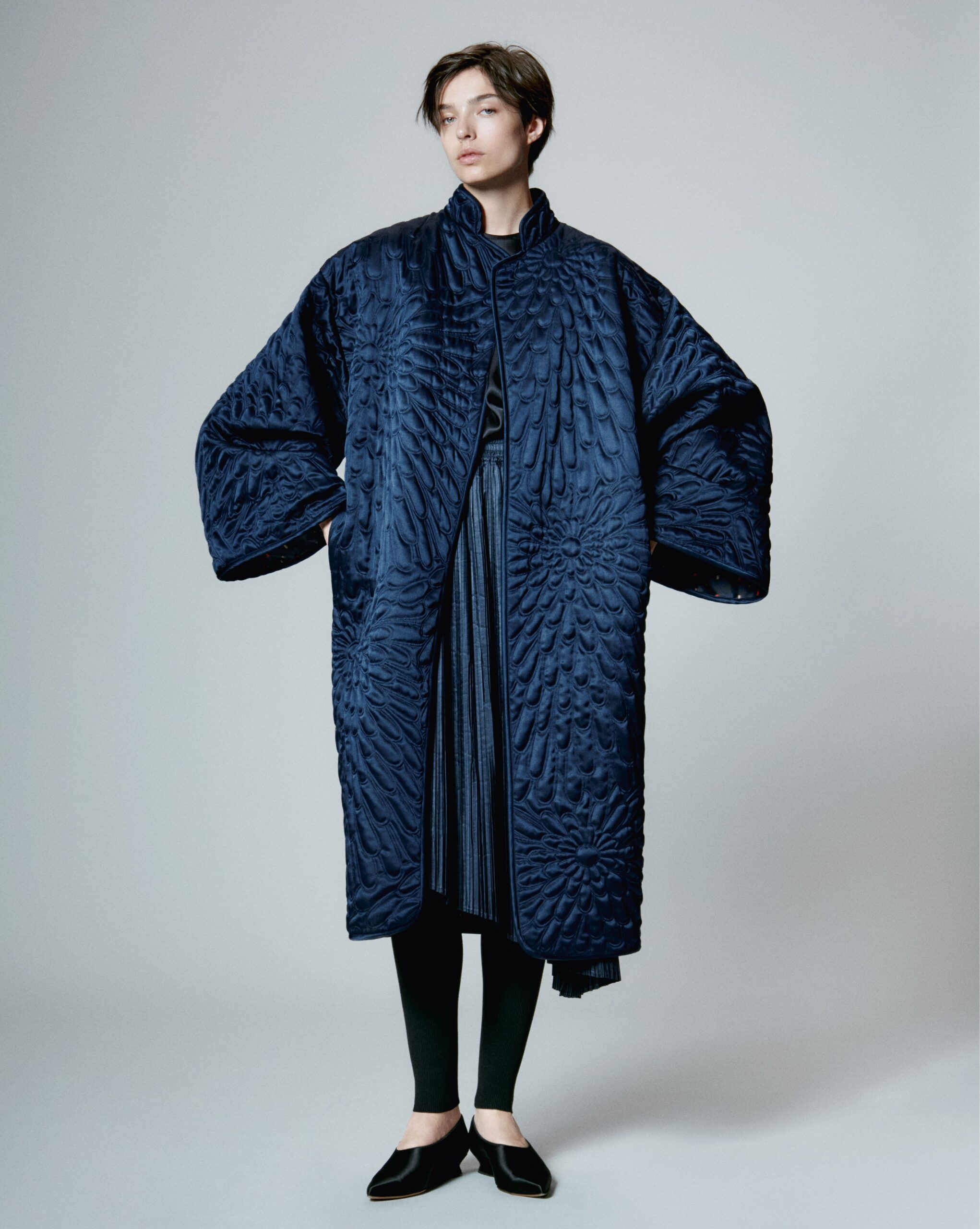 Плавна гармонія та яскрава простота японського одягу пронизують колекцію: кашемірові або стьобані шовкові пальта з невеликими комірцями-стійками; ткані жакети без коміра, пов’язані спереду; піджаки в стилі кімоно і круглі штани; довгі сукні з принтом. Крій чистий і подовжений. Верхній одяг виготовлений із льону, що додає йому літнього відчуття. Трикотаж визначають пластичні силуети.